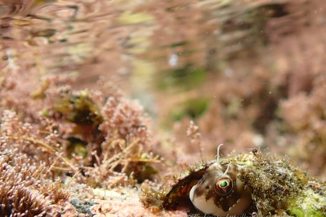 太陽光が差し込むタイドプールで、ロウソクギンポの撮影を楽しみませんか?
