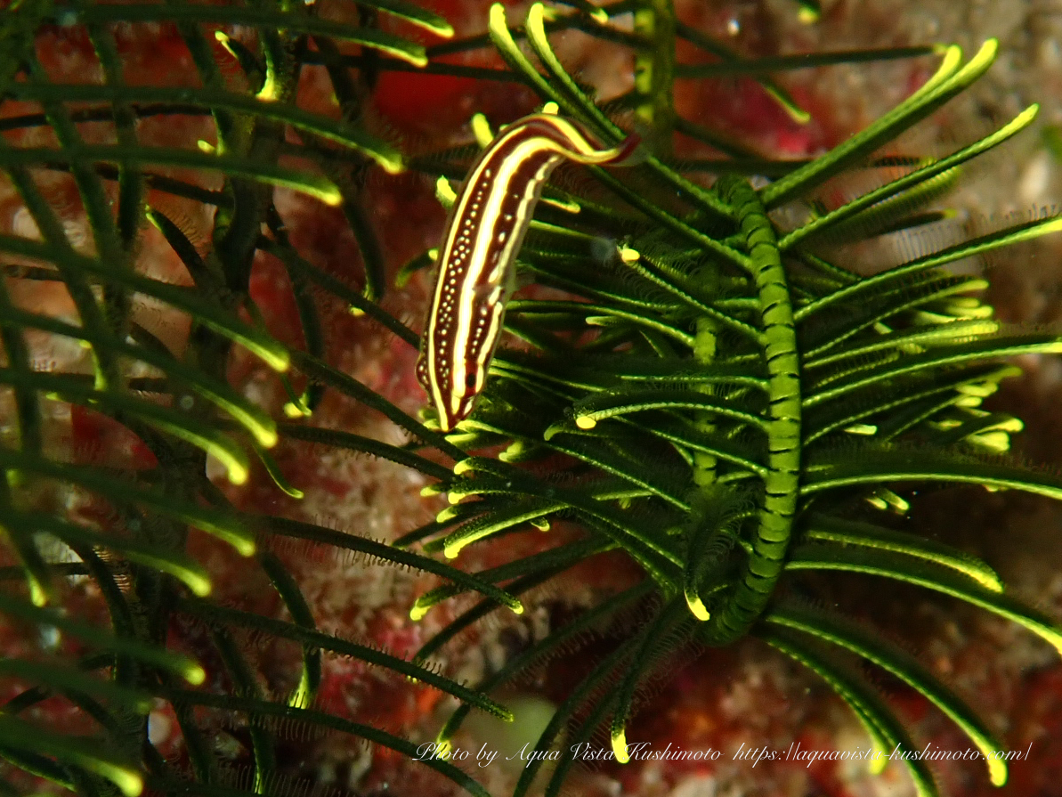 緑のウミシダに寄り添って生活する魚。