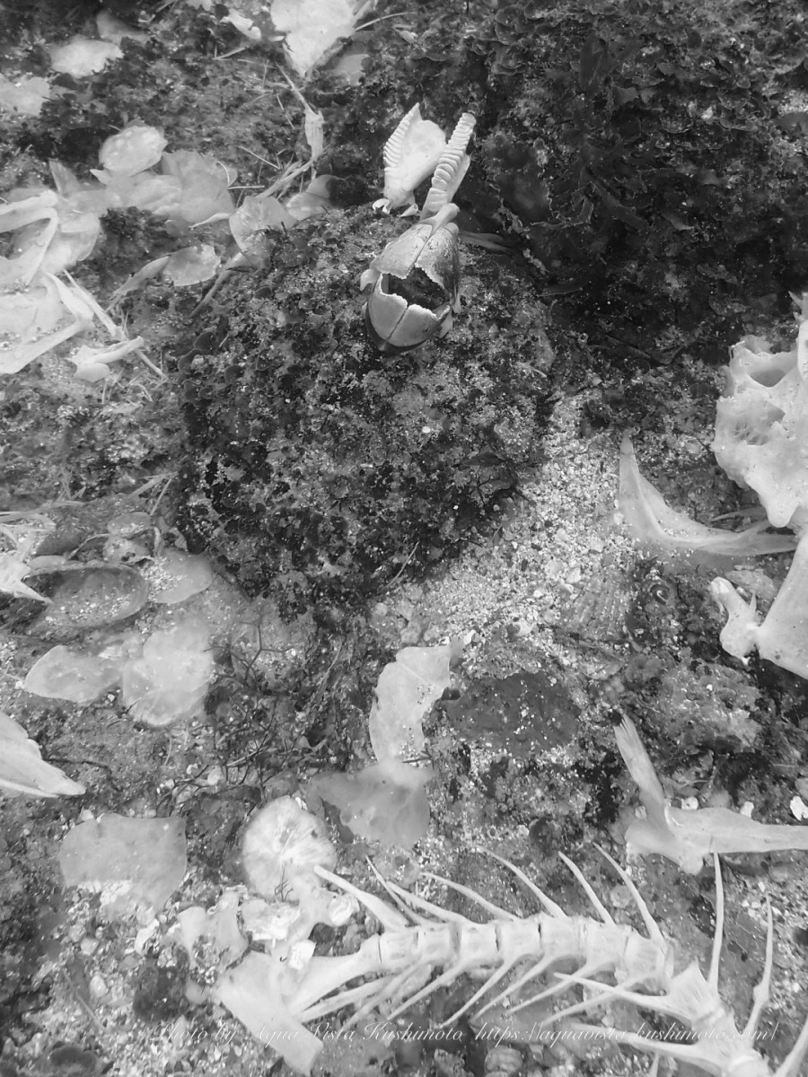 よく見ると見覚えのある嘴が(〜〜;)おそらくアオブダイの亡骸です・・・。