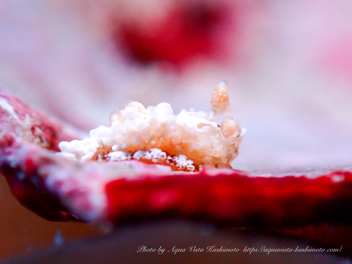 そこはネコジタウミウシの仲間がたくさん。ツルヒメウミウシも1cmほどの大きな個体から写真の3mmほどの個体まで1箇所に固まっていました〜〜。