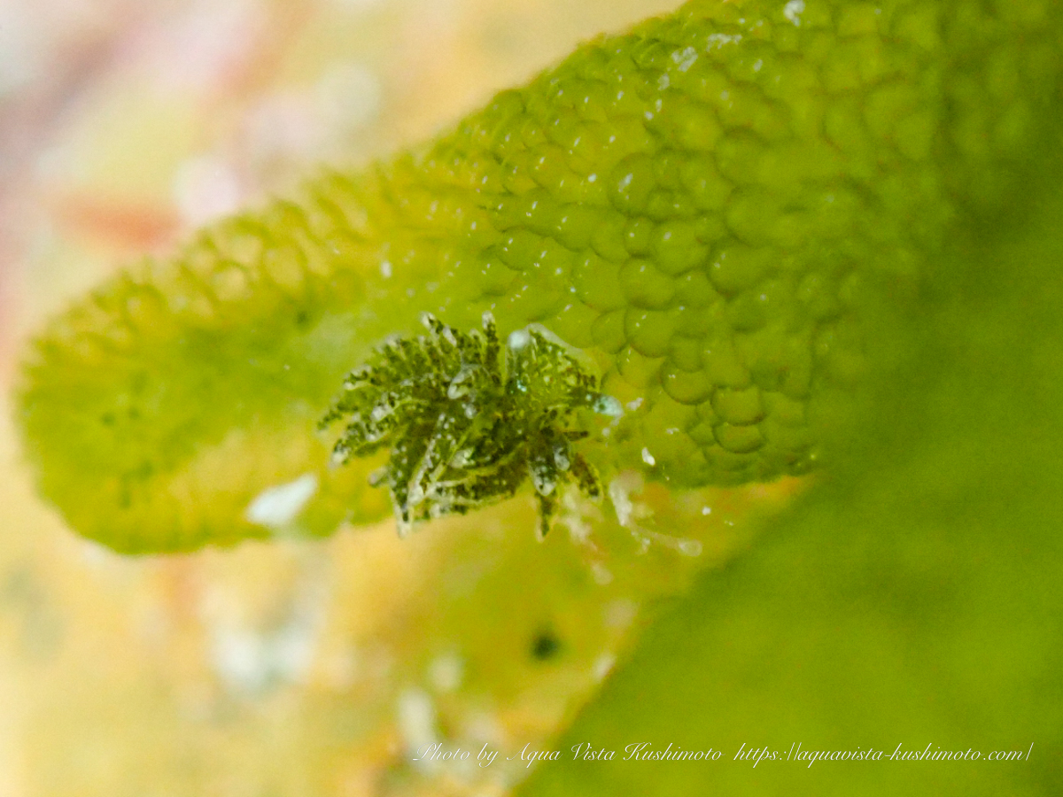 大きさ2mm位のハデヤママユガイ。よ〜〜く見ると目が見える可愛いウミウシの仲間です。