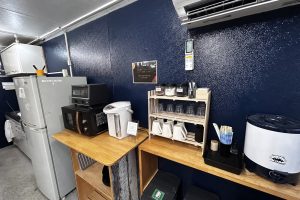 - 冷暖房完備の休憩スペース。ダイビングの合間にしっかり温まる事ができます。